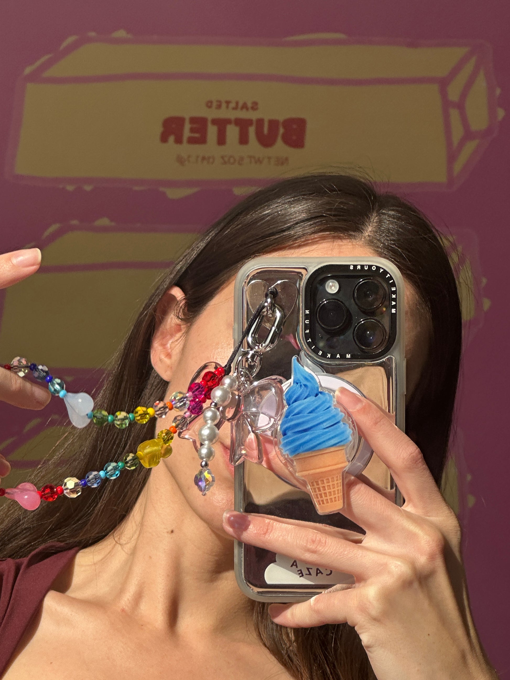 Stay cool, babe. This blue soft serve won’t melt, but it will definitely melt some hearts. The perfect accessory for a sweet summer look.